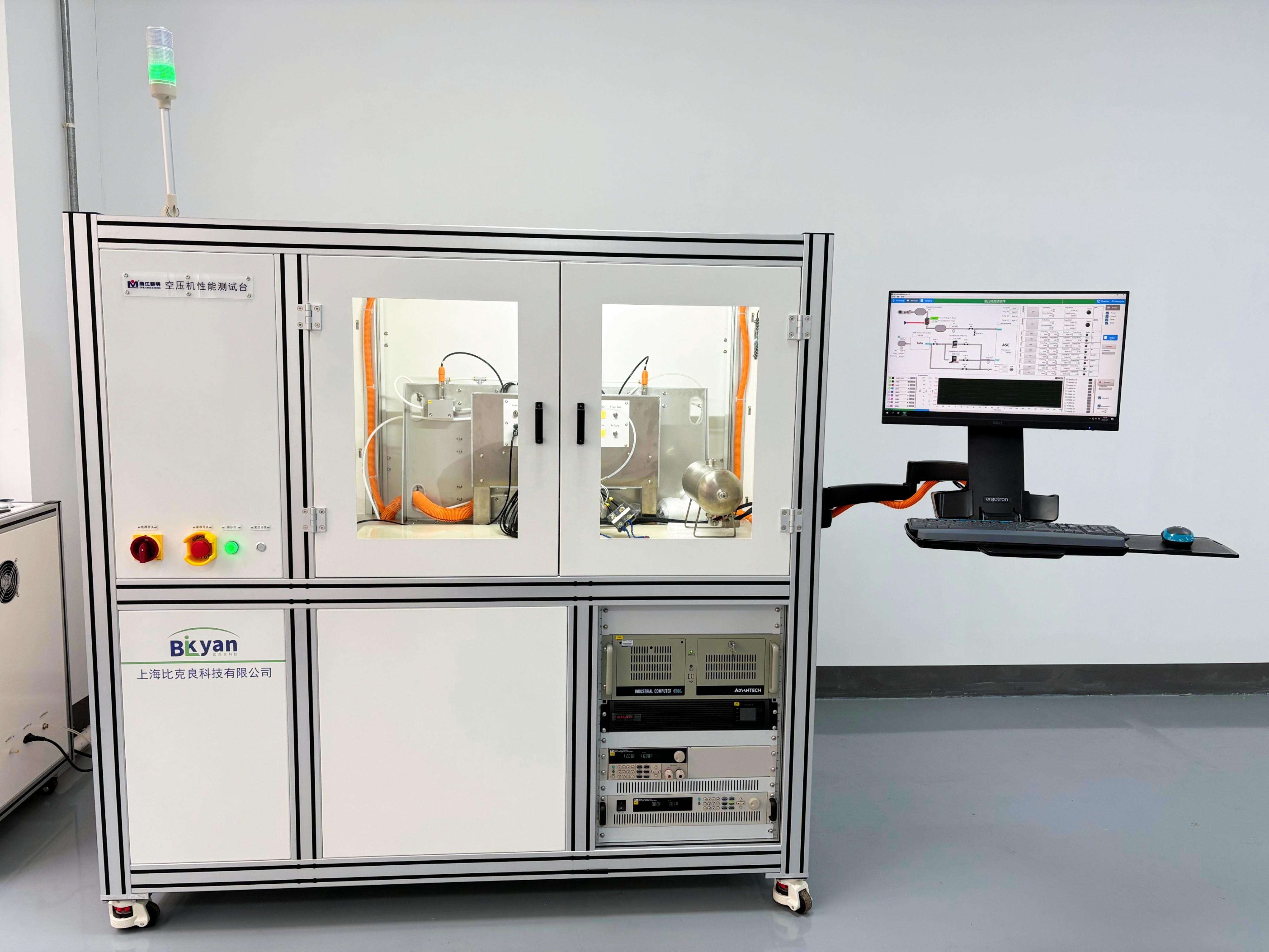 汽车空气悬架空压机性能测试系统,主要对汽车空气悬架系统部件中的空压机、分配阀的性能进行性能及耐久测试。测试项目主要包括:1、充气和泄压试验(可模拟海拔高度);2、泄漏测试;3、浪涌电流测试;4、升降温测试;5、热冲击测试;6、RAPA响应测试等。